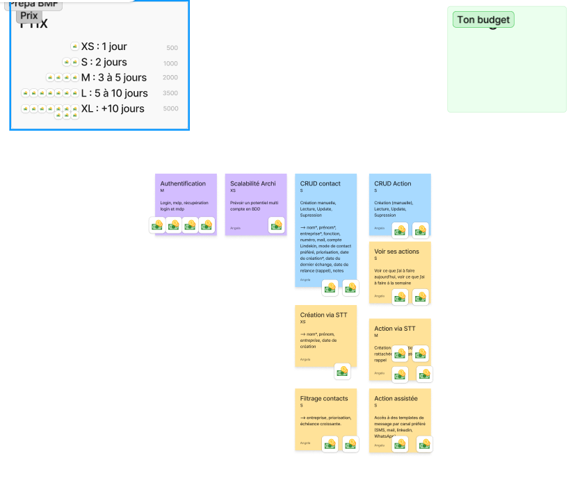J'ai eu la chance de participer à l'atelier « Buy me a Feature » animé par Angela, et j'ai compris que concevoir un MVP, c'est avant tout faire des choix et savoir dire « non » à certaines fonctionnalités.